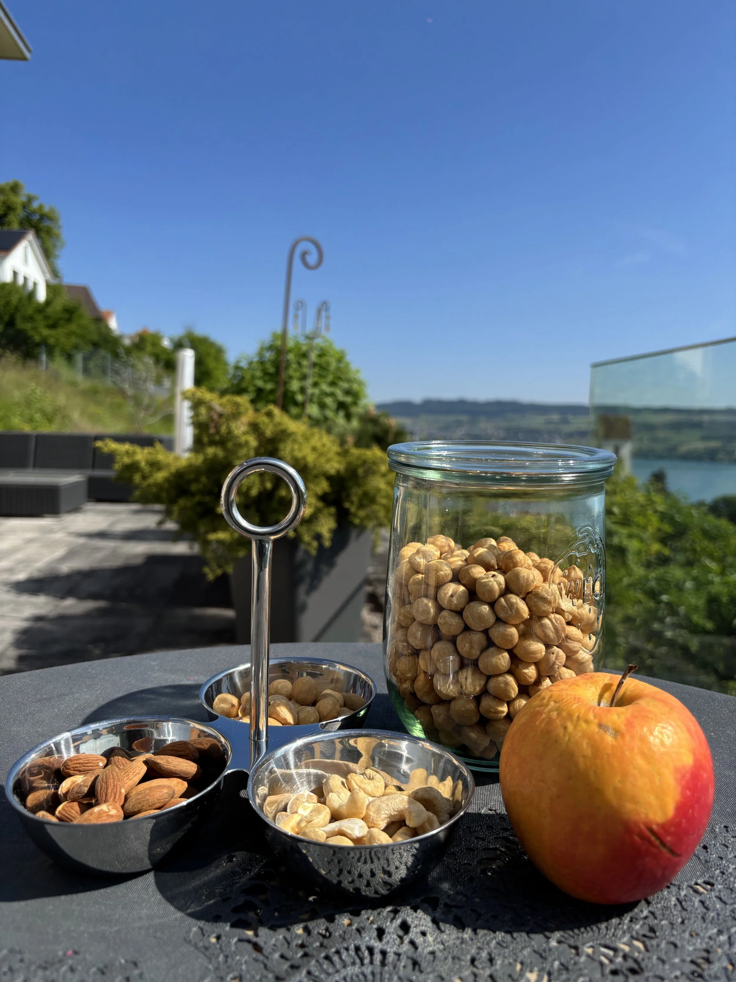 die ganzen Nüsse mit den wundebaren Fettsäuren die du jeden Tag eine Handvoll Essen kannst.